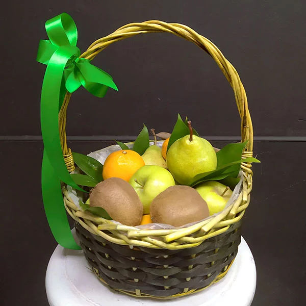 Что за сюрприз сможет сравниться со спелыми и ароматными фруктами? Вы можете подарить своим близким полезный и вкусный подарок, который будет оригинальным и уместным по абсолютно любому поводу. Отличное дополнение к праздничному столу, дружеским посиделкам или, как знак внимания для дорогого Вам человека. Корзинка наполнена яблоками и грушами, апельсинами и киви, в общем, всем тем, что так любят и взрослые и дети.