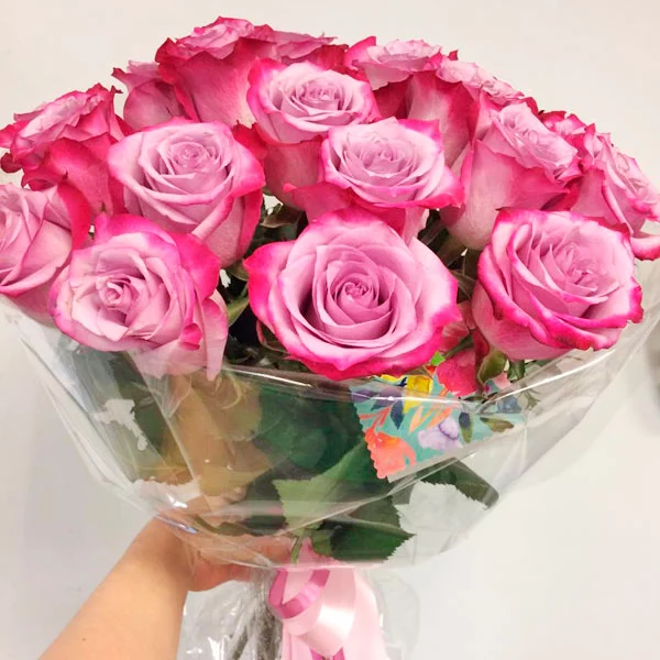 15 роз: роза розовая - 15шт., упаковка, лента.