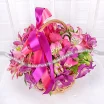 Красивая и нежная корзина. Аккуратно собрана, полностью соответствует описанию и фотографии. Доставка выполнена в срок