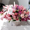 Альстромерии розовые и фиолетовые – 11 шт.,оазис, корзинка.